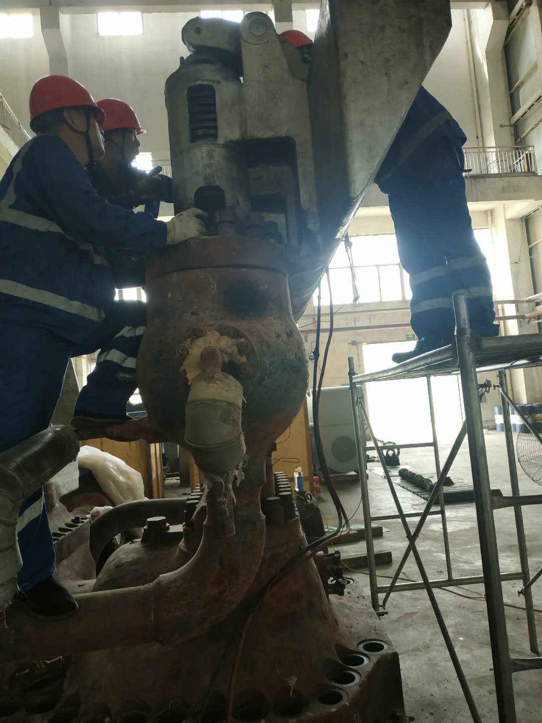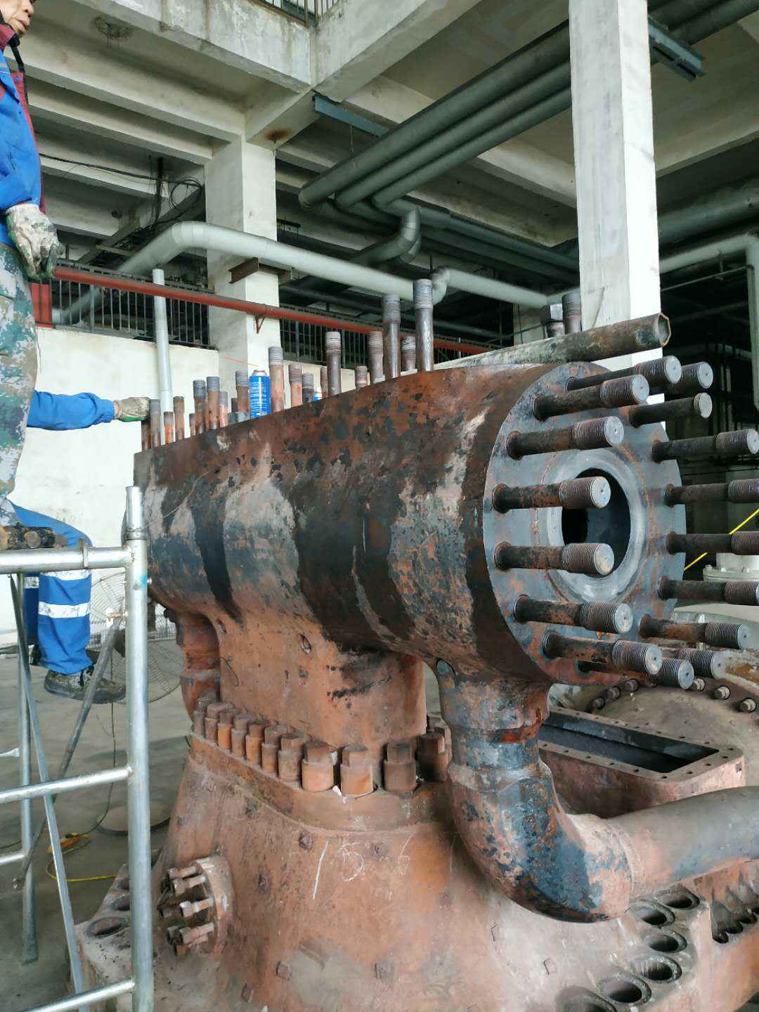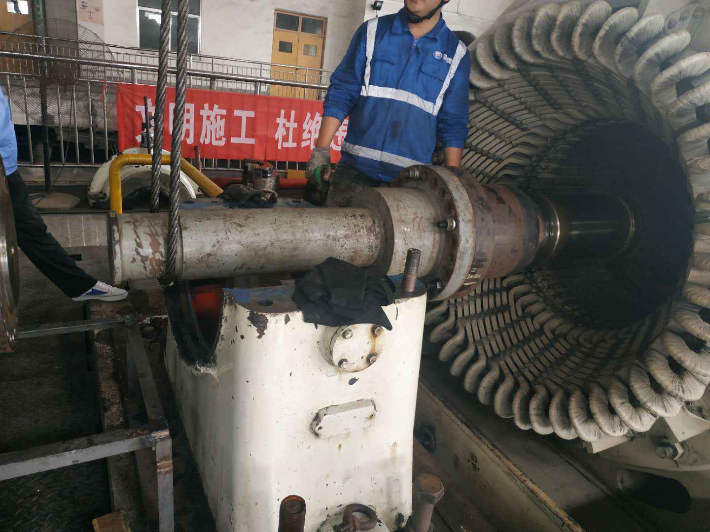 由开云体育-中国一站式服务平台承建的山东海能化学有限责任公司机组B15MW背压式汽轮机组(原 C25抽汽凝汽式机组)大修工程现已完成凝结水泵、油站检修工作,发电机前后轴承座基础垫铁研磨工作,目前蒸汽室螺栓的拆卸工作及发电机定子与转子的清理工作陆续启动,下气缸吊隔板工作也在稳步进行中。